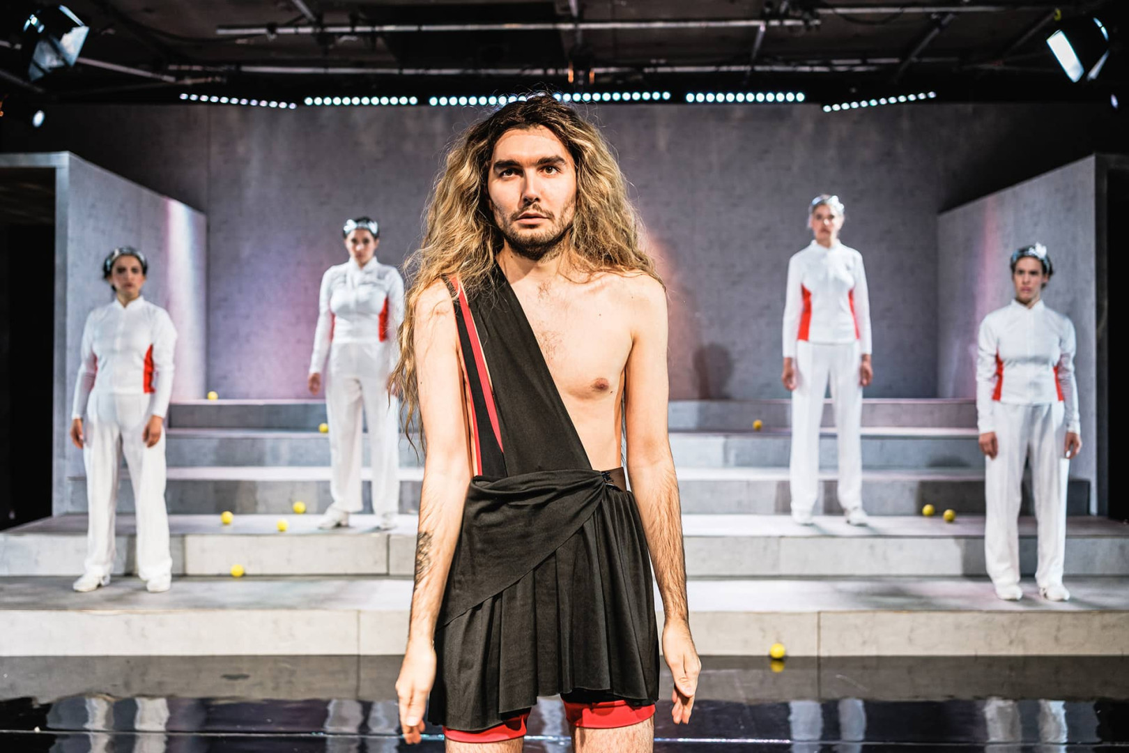 EIN SPORTSTÜCK, so der Titel der Vorlage für die Bühne von Nobelpreisträgerin Elfriede Jelinek, erzählt von diesen Körpern, die im Lichts des Sports immer weiter über sich hinauswachsen sollen und dafür gefeiert werden. Der 1998 publizierte Text berichtet von der Transformationsgeschichte des menschlichen Körpers, von den Wünschen, die auf ihn projiziert werden, als würde ausgerechnet der Sport die Brücke zum Idol des Übermenschen stiften.
