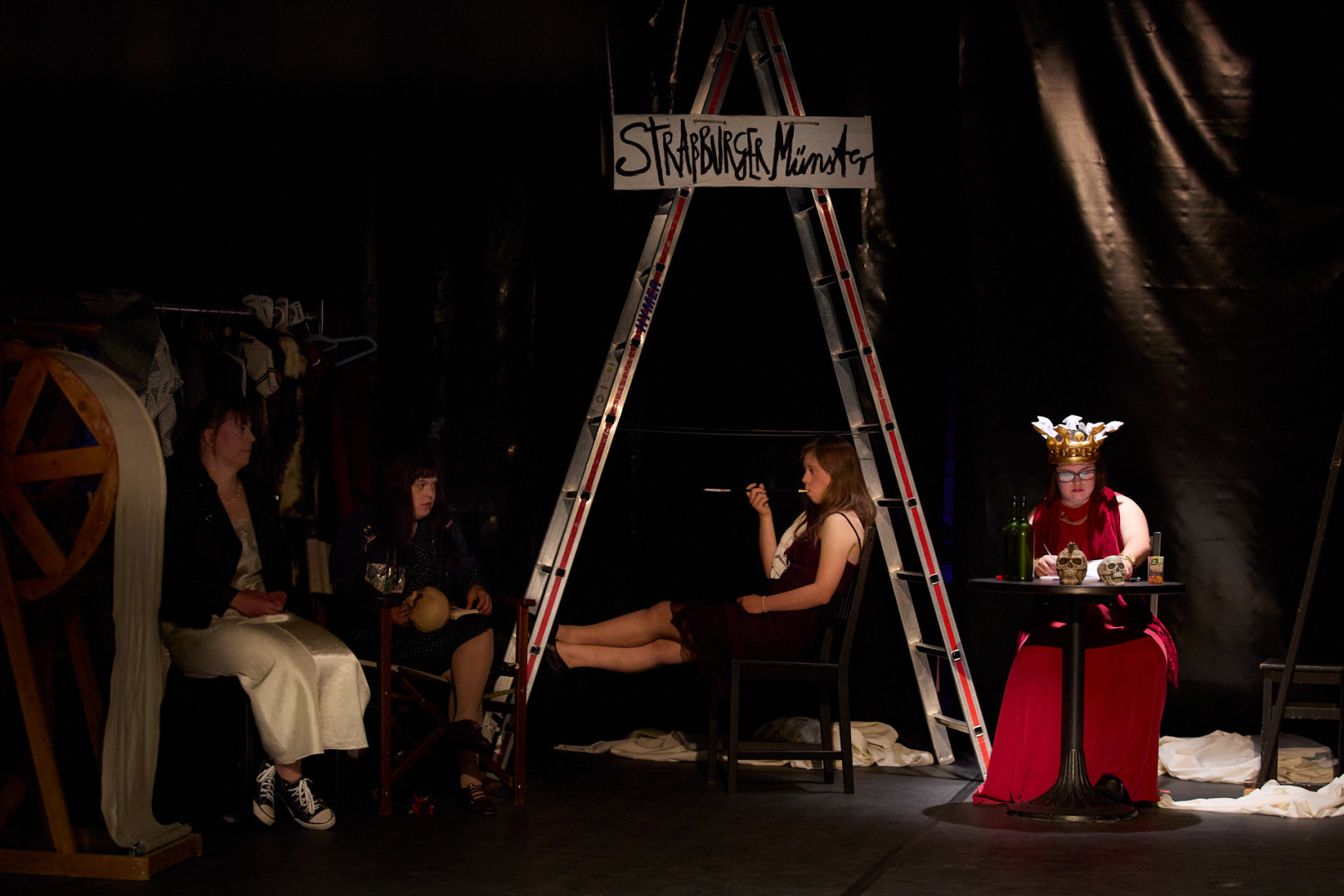 "Die großartige RambaZamba-Truppe lässt Theatergeschichte lebendig werden: Wenn sich das damalige Starensemble – darunter der in einer Bochumer Zadek-Inszenierung von „Hamlet“ umjubelte Ulrich Wildgruber (unter einer Aluklappleiter mit Pappschild als Straßburger Münster) kräftig betrinkt („Lieber ein stadtbekannter Säufer als ein anonymer Alkoholiker.“), dann landen auch alle Eitelkeiten und Missgünsteleien auf dem langen Tisch. Und am Ende kommt es trotzdem – oder deswegen? – zur Premiere! Das ist Theater."